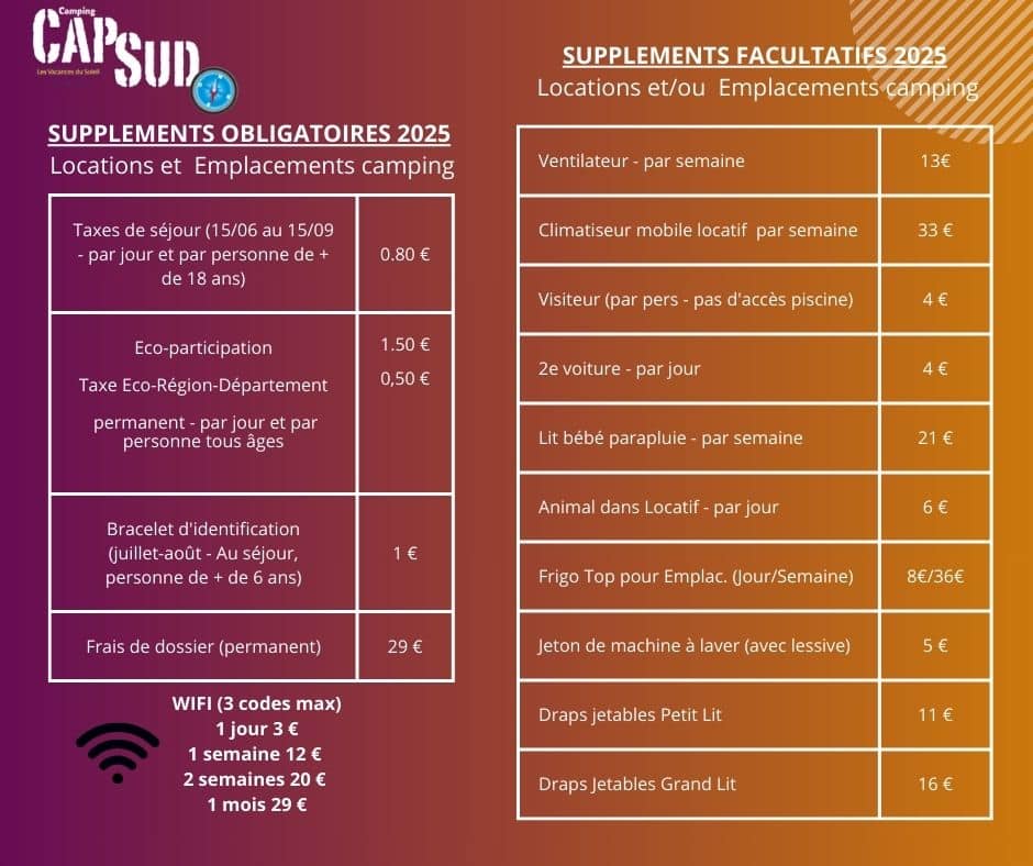 Tarifs 2025